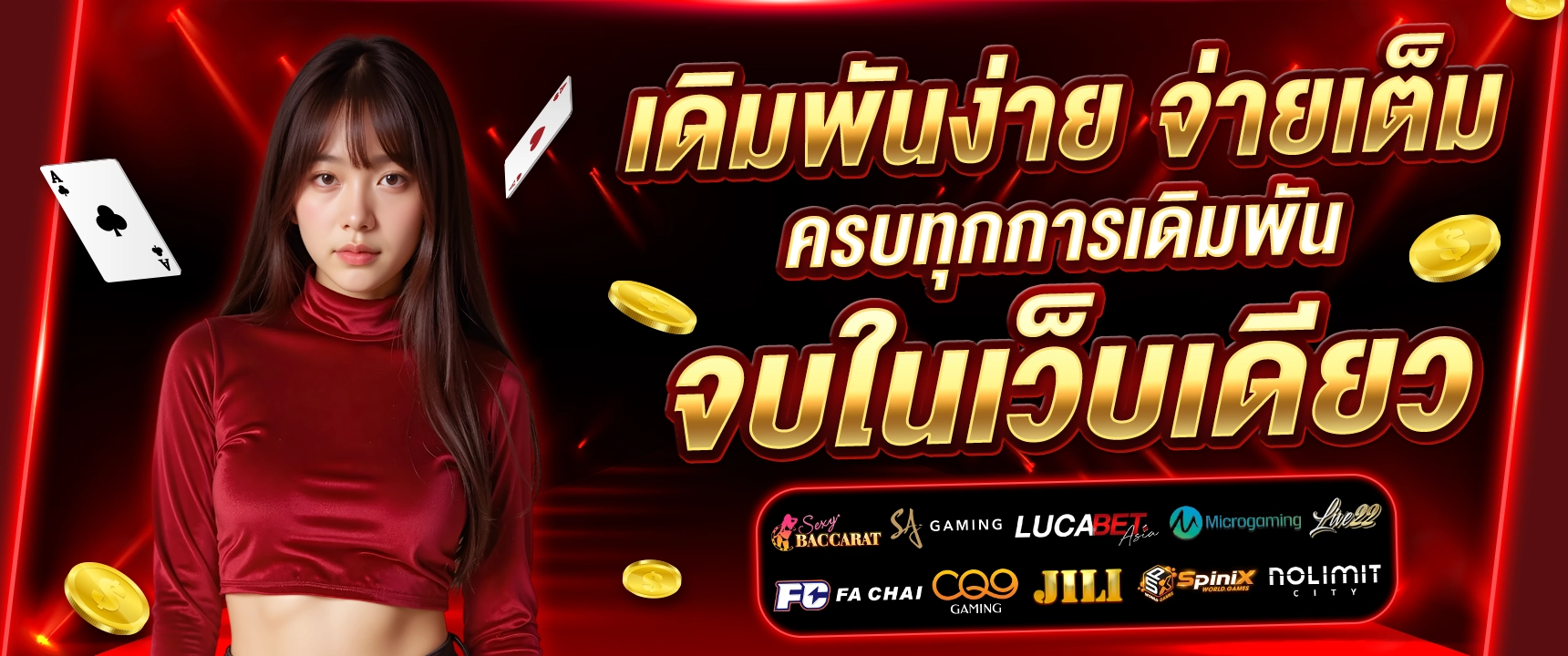 เว็บไซต์ออกแบบทันสมัย ใช้งานง่าย นำเสนอเกมจากค่ายดังระดับโลก อัพเดทเกมใหม่สม่ำเสมอ พร้อมโปรโมชั่นสุดคุ้มมากมาย ทั้งโบนัสต้อนรับสมาชิกใหม่ โบนัสเติมเงิน และกิจกรรมแจกรางวัลประจำสัปดาห์